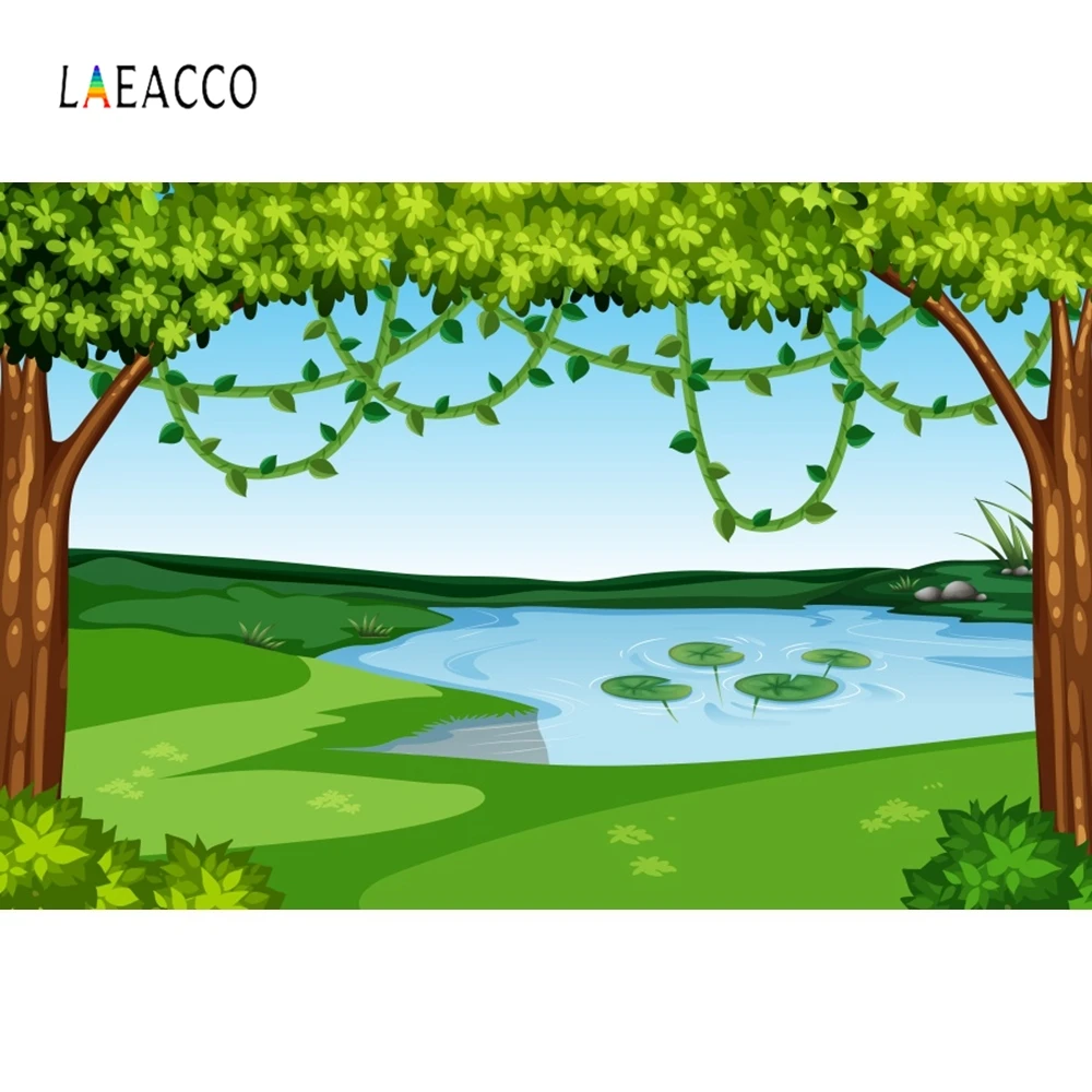 Laeacco Kartun Pemandangan Alam Pohon Grassden Fotografi Latar Belakang Disesuaikan Fotografi Latar Belakang Untuk Foto Studio Background Aliexpress