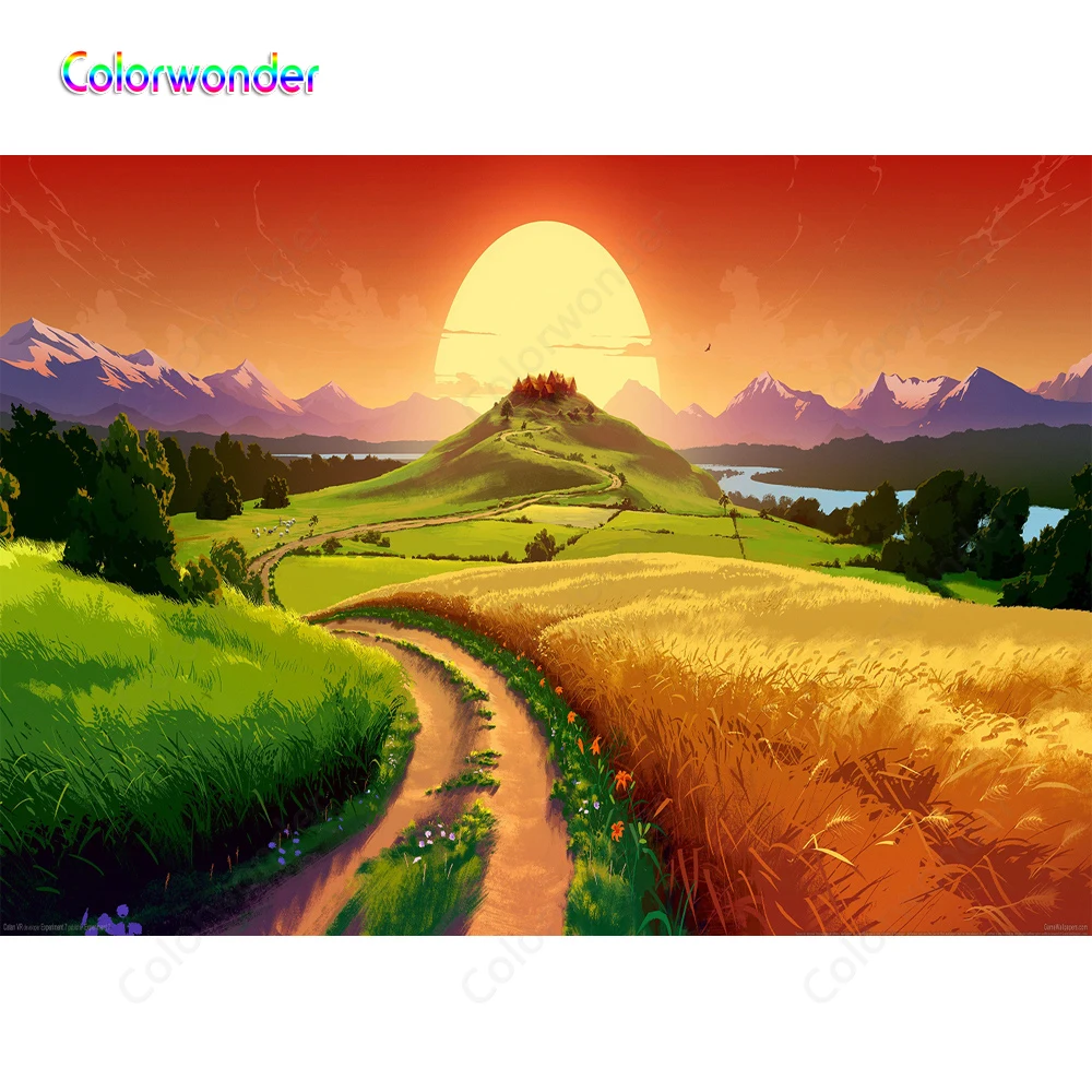 Kartun Fotografi Latar Belakang Pegunungan Hijau Dengan Emas Ladang Gandum Alami Pemandangan Matahari Terbenam Malam Latar Belakang Untuk Pesta Ulang Tahun Background Aliexpress